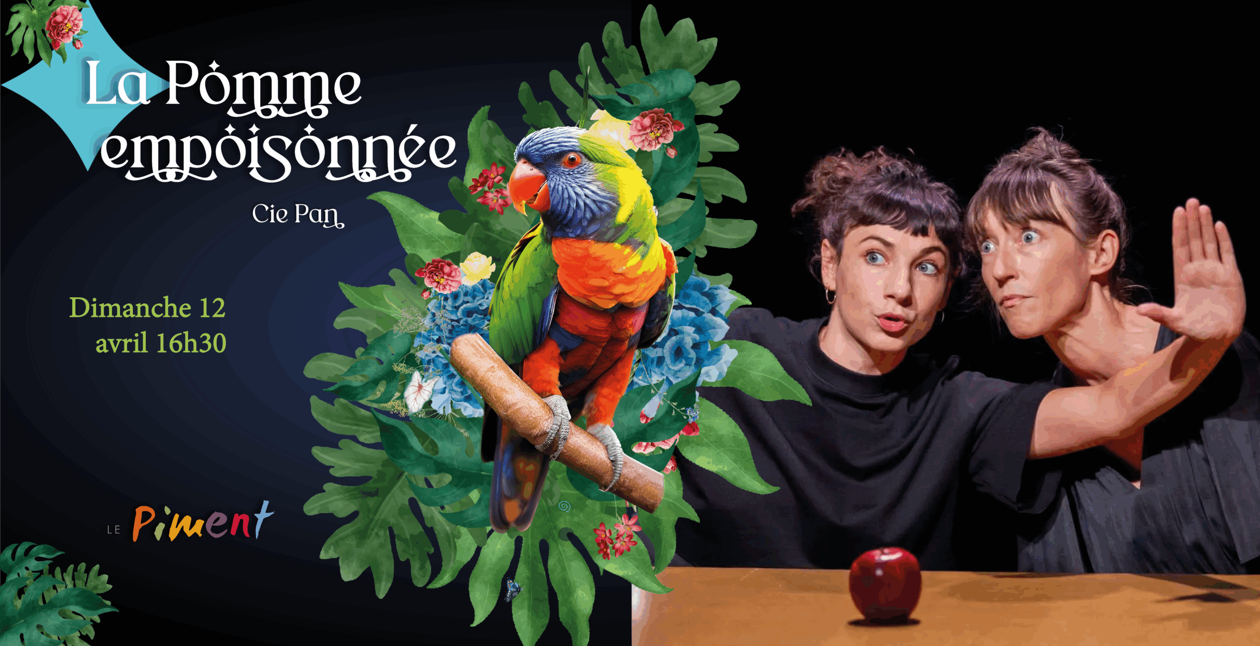 Saison Culturelle 2025-2026 Dimanche 12 avril à 16h30 au Piment, découvrez la pièce de théâtre La Pomme empoisonnée de Cie Pan qui réinvente un célèbre conte. Tarif Jeune public / Tout public / 1h00 min Une pomme rouge empoisonnée sert de point de départ à une histoire entre… Read More