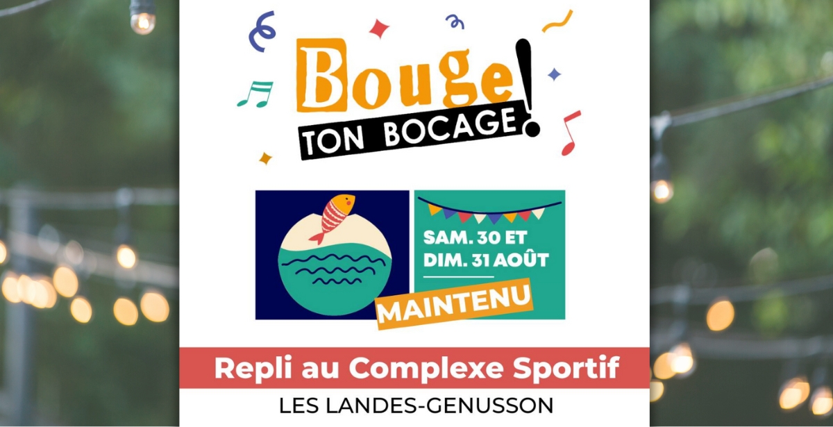 Le festival « Bouge ton Bocage » revient pour sa 14e édition ! 🎈 Participez aux festivités les 30 et 31 août aux Landes-Genusson : deux jours de spectacles, concerts et animations gratuites ! Prévu initialement à la Godelinière, le festival se replie à l’abri, au Complexe sportif, rue du stade,… Read More