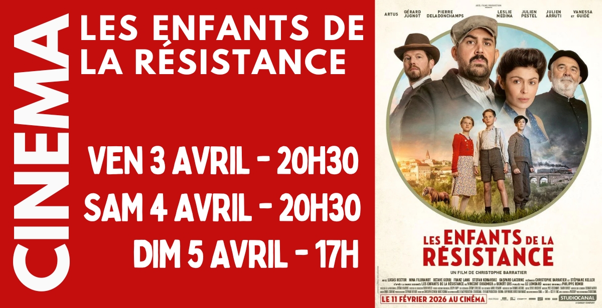 CINÉMA L’association Familles Rurales vous propose plusieurs séances du film « Les enfants de la résistance ». 🎥 Genre : aventure, drame, famille, historique / Durée : 1h41 📅 Vendredi 3 avril, 📅 Samedi 4 avril, 🕔 À 20h30, 📅 Dimanche 5 avril, 🕔 À 17h. Read More