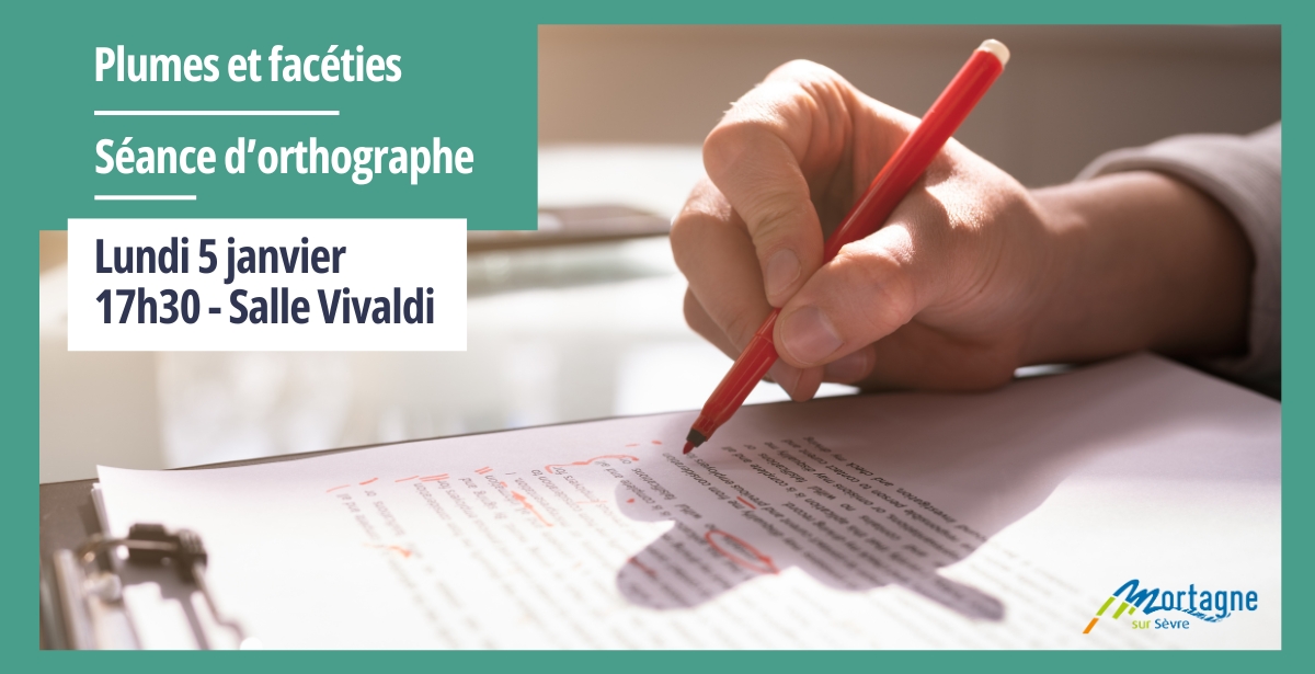 SÉANCE D’ORTHOGRAPHE L’association Plumes et Facéties organise une séance d’orthographe. ✍ 📅 Lundi 5 janvier, ⏱ à 17h30, 📍 Salle Vivaldi, école de musique. Read More