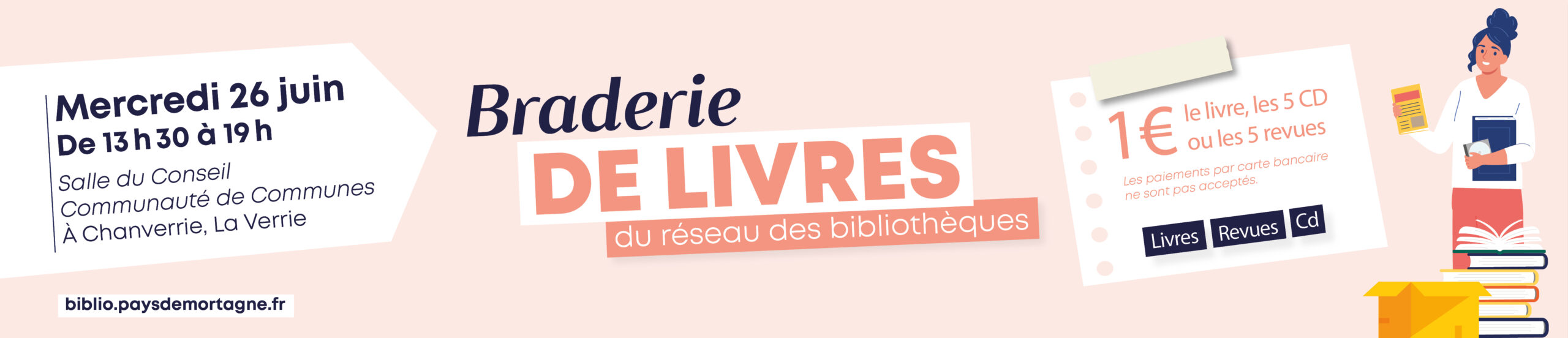 A vos agendas ! Le réseau des bibliothèques organise sa braderie de livres le mercredi 26 juin de 13h30 à 19h00 dans les locaux de la Communauté de communes du Pays de Mortagne. Romans, BD, documentaires, revues… seront mis en vente à petit prix (1€ le… Read More