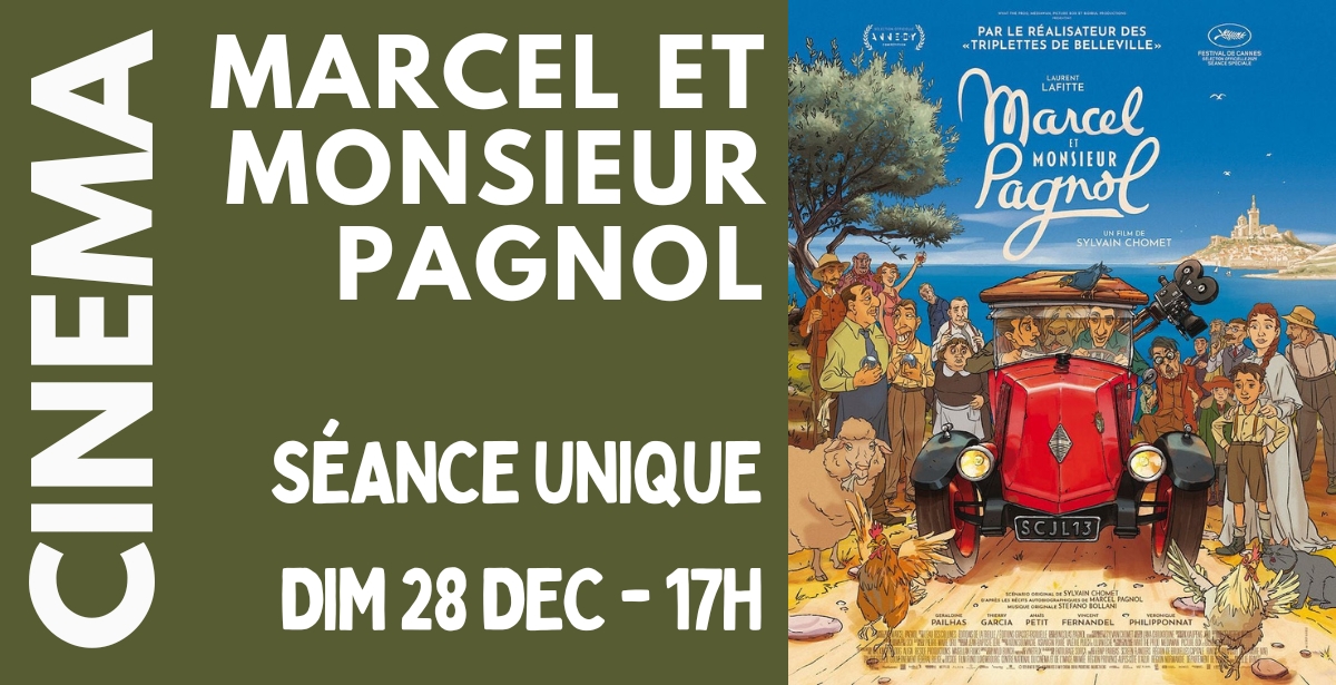 CINÉMA L’association Familles Rurales vous propose une séance unique du film d’animation «Marcel et Monsieur Pagnol». Genre : animation, biopic / Durée : 1h30 📅Dimanche 28 décembre, 🕙 À 17h, 📍 Piment, Place du Château. Tarifs : 7€ / 5,20€ /… Read More